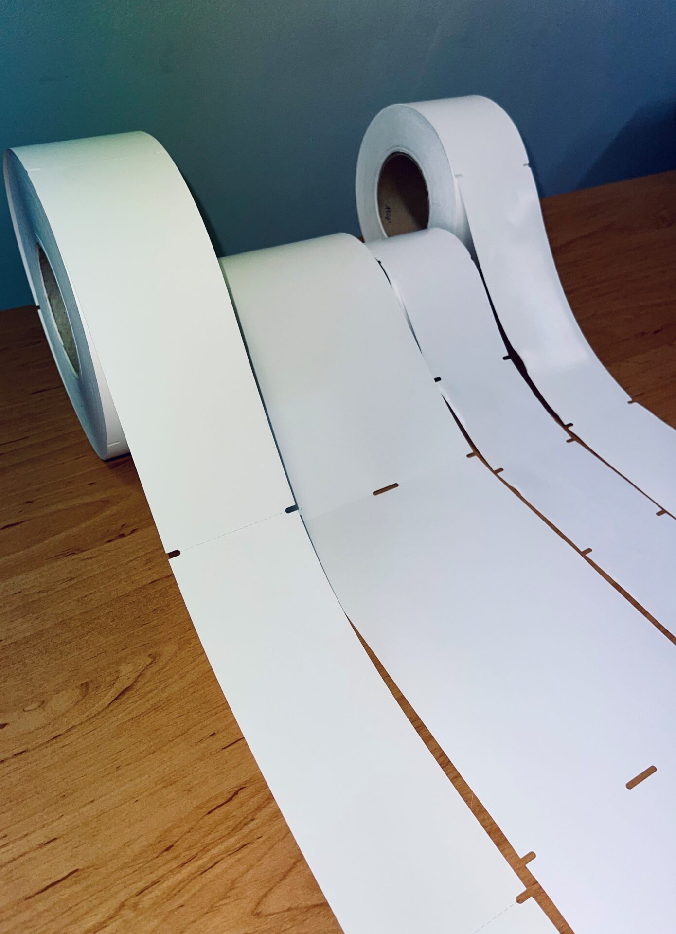Etikety bez silikonové podložky (lineru). Jedná se o ekologické řešení, kde hlavním benefitem je úspora spotřeby materiálu při výrobě, redukce odpadu po aplikaci etikety a efektivita práce. Na roli se vejde až o 75 % více etiket. ...